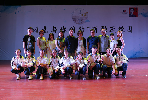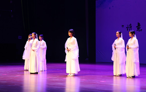 最后以一首《再别康桥》作为此次诗歌赏评晚会的尾声点缀。《再别康桥》和缓动听,展现了徐志摩先生的康桥情结,诗歌的特有魅力在柔情舒缓的歌声中渐渐绽放,让全场观众为之动容。歌声淡出,台下掌声轰动,“诗意与你同行”诗歌进校园活动也在优美的歌声中缓缓落幕。