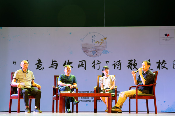 诗会伊始,一首浅吟低唱的《歌》令大家缓缓走进诗歌的世界。海宁市职业高级中学师生带来的诗朗诵《祷》,柔婉细腻的文字,轻重缓急的语调表达了爱是世界的支点,是世界的光芒;紧接着,《呼唤阿罗》、《诗八首》、《夜曲》、《采薇》、《投水》,一首首情韵深挚的诗歌在影剧院回荡,诗人们对诗歌的精彩演绎让在场的观众沉入诗境,带给大家真切的感染与会心的感动。