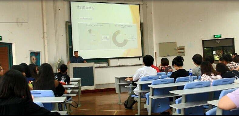 此次说明会以“专业到职业,员工到员工”为主题。会上,陈明亮老师首先就实训开展的情况、背景与目的、特点与要求对本次实训进行了详细的解说,并专门针对前期收集到的一些问题为同学们答疑解惑。陈明亮老师指出,此次实训以跨专业的团队形式开展,其目的在于检验或强化专业能力和专业素质,培养和发展团队合作的职业意识能力。接着,各实训指导老师分别上台介绍了各自的指导范围和主题,以便于同学们可以更好地根据实训的项目主题选择心仪的导师。
