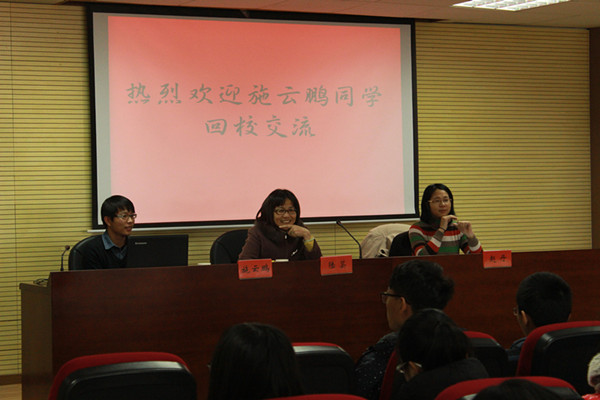 最后,施云鹏学长开始向在座的学弟学妹分享自己在创作《天空的空》时的经验。首先,他向大家介绍自己的小说内容与创作技巧,从中不难看出施学长的良苦用心,他结合自己的小说内容向大家说明了伏笔的重要性——塑造人物的丰满形象,推动小说情节发展;其次,施学长还和大家谈了自己的态度,他相信“质变产生量变”,一点一滴的积累能堆砌出小说华丽的城堡;最后,施学长还与在座的学弟学妹进行了互动,大家都踊跃参与,热闹的气氛缓和了海宁冬天的寒冷。