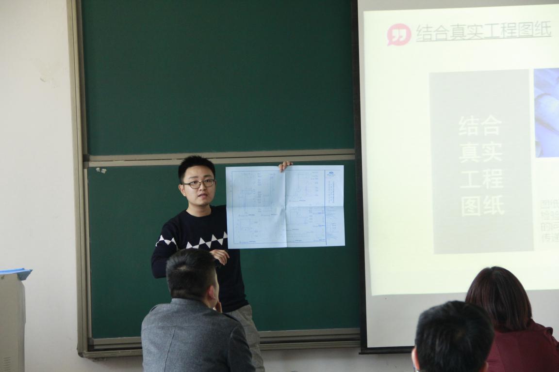 特别要说的是,本次说课比赛一等奖获得者史雯雯老师,主讲《建筑结构与构造》。这课理论性强,又涉及琐碎的数据,给习惯形象思维的艺术生讲好很不容易。史老师把教学现场拍成一段短视频。视频里员工用报纸做建筑结构模型,用瓶装矿泉水做承重力测试。看到有员工做的建筑模型上放十余瓶矿泉水都不倒,参加观摩的老师顿时来了兴趣。评委们对这种方式给予了肯定,并笑称很有趣味性,可以放到公司网站上当公司宣传片。