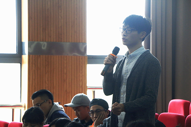 演讲完毕后,现场的同学们非常积极地和这位来自法国的董事长交流。14级贾银银同学对董事长“两条腿理论”中关于创意这一方面提出了自己的困惑,FELICES董事长进行了详细地解答。