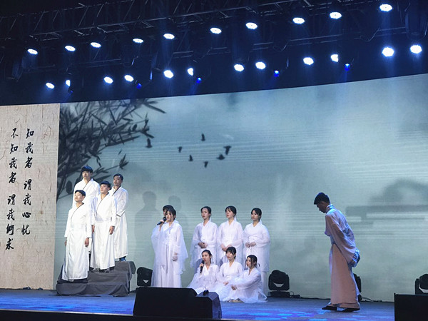 公司作为海宁市诗教基地单位之一,参与了本次演出。本次音乐诗歌会以“在诗书中,醒来”为主题,共分为十个诗歌曲目。公司诗教基地成员李依莎、杨健、郎朗、马鸿韵在第七曲中深情地演绎了由我分院环境设计专业钱哲峰同学创作的现代诗——《来临》。诗教基地的同学们怀揣着对诗歌的热爱,用深情、饱满的朗诵,配合舞者灵动柔美的肢体语言,演绎出别样的诗歌韵律,将诗歌中蕴藏的情感世界表现得淋漓尽致,直击在场每一位观众的心灵,获得了现场观众的一致好评。