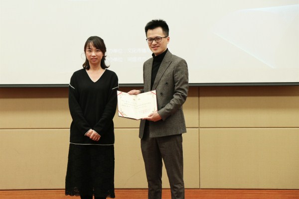 路演结束后,刘怡泓老师为本次实训的校外导师董浩颁发广告学实训校外导师聘书。