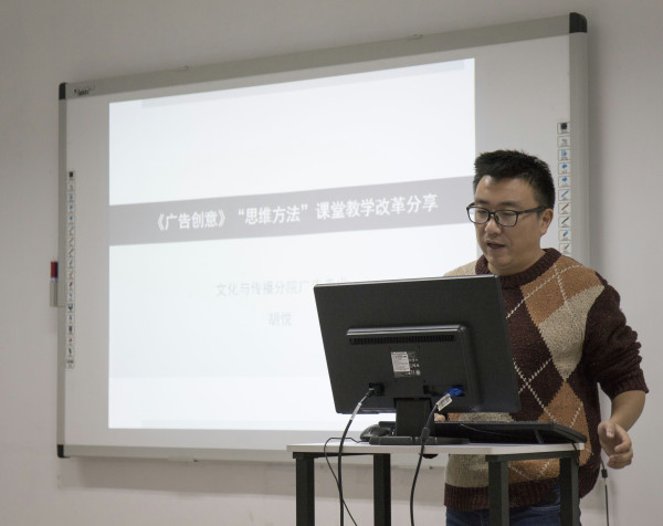 11月27日下午,文化传播与设计分院的胡悦老师参加教务管理部组织的浙江省高等教育课堂教学改革项目成果分享沙龙,其分享的主题正是他2015年立项的《广告创意》“思维方法训练”课堂教学改革。