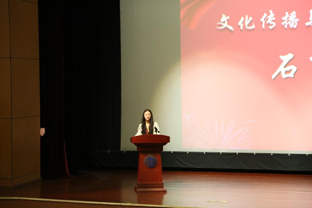 随后,在校生代表16文学D1班石可丽上台表达了对学长学姐的感谢及对他们未来旅程的美好祝愿。
