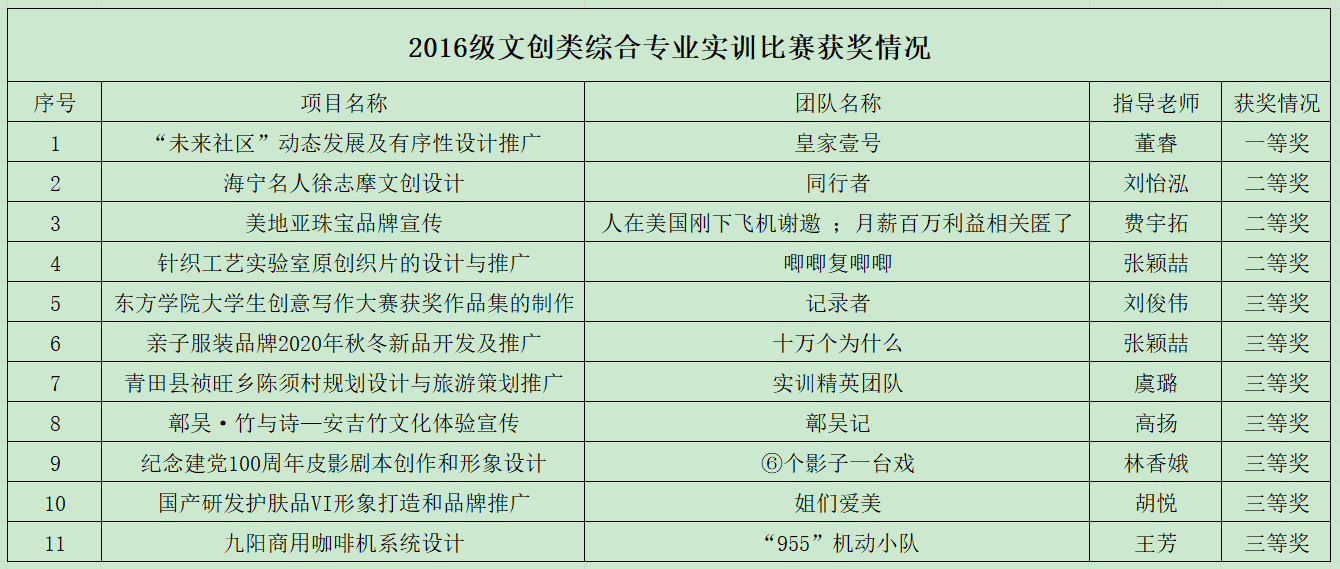 本次综合专业实训优秀的团队诸多,涉及商业推广、文化宣传、艺术设计三大类别,入围优秀团队的共有十一组,展出的作品将舞台映衬的更加熠熠生辉。最终评审出一等奖1项、二等奖3项、三等奖7项。