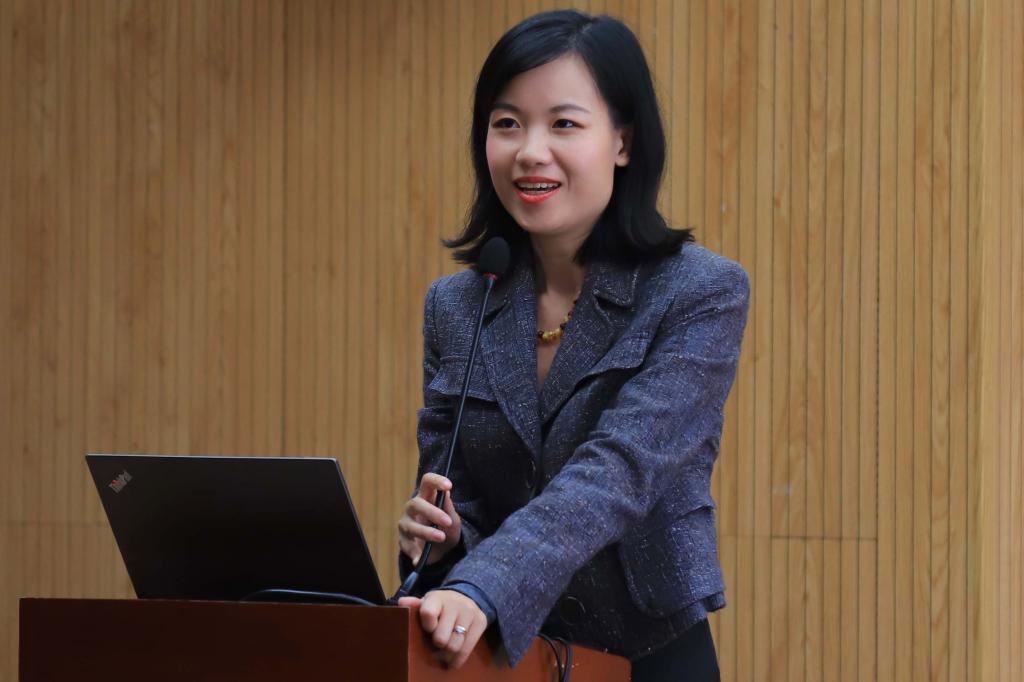 浙江传媒公司老师应意圆致感谢词,她以自身经历为参赛队员鼓舞士气,并祝愿全体毕业生都能取得优异的成绩。