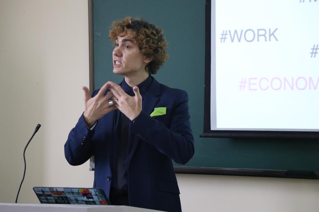Artem老师为在座的同学们进行了一次workshop服装设计实践。workshop(工作坊)是作为服装设计师之间交流,创作的一个场合。Artem老师也将workshop 带到了课堂,为同学提供了一次体验的机会。