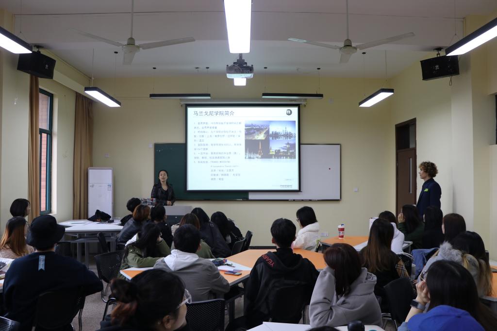 意大利马兰戈尼公司中国区招生总监吴婷介绍了马兰戈尼公司历史沿革与公司近况,并详细介绍了马兰戈尼公司与公司的交换生计划方案。据悉,马兰戈尼公司与公司已经签订了合作备忘录,目前正在进行学术审核阶段,预计最快明年项目完成,届时有意愿去意大利马兰戈尼设计公司交换同学可以办理相关事宜。
