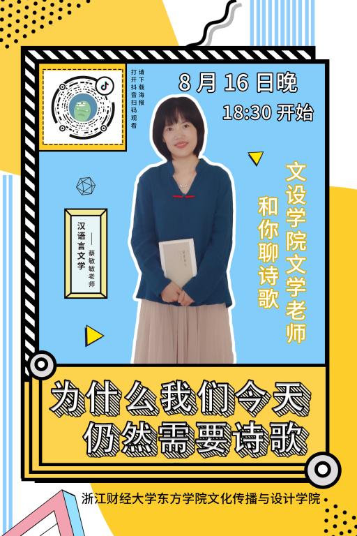 从中文系本科到博士一路走来都会有不少人问我,文学到底有什么用?尤其是文学中看似最“无用”的诗歌,暗里却隐藏着很多贯穿一生的实用技能:取名字、追妹子、哄孩子……其实日常琐碎的生活和诗意地栖居之间并不矛盾,而对于诗歌之美的感受力是一项需要学习的能力,它需要丰富、敏锐的生命触感,更是一种不可或缺的生命体验。8月16日晚,让我们一起从诗词歌赋谈到人生哲学。