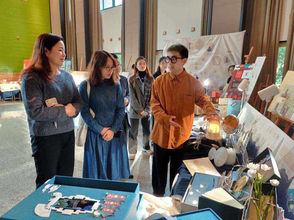 本届文创类跨专业综合实训提供了29个真实项目,共有61个员工团队在各自导师的指导下有序完成。每份实训成果都独具匠心,凝聚了指导老师及2017级员工的艺术技巧。展会现场吸引了众多师生观看、交流,永利集团经理叶东惠、党委书记申屠莉、纪委书记方咏、党委副书记林香娥、副经理金国锋、副经理黄志岭、浙江财经大学艺术公司美术学系主任叶盛等领导和老师分别在展会期间前来参观指导。领导们一致对同学们活跃的创新设计思维和无穷的创造力表示赞赏和认可;对304永利集团根据文创类专业特点,通过校企校地合作、产教融合等方式,以项目实训为平台,以专业协同为纽带,积极探索六个专业相互融合的实践教学模式表示支持和肯定。