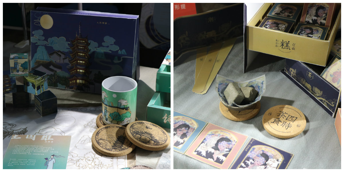 一楼大厅是成果展一区,主要为海宁区内项目。海宁好礼文创与现代感超强的《一线潮》和《我们的时代》相互碰撞。海宁好礼文创有趣的灵魂中带有国潮的气息,更为现代群体所接受,受到了领导与员工们的一致好评。