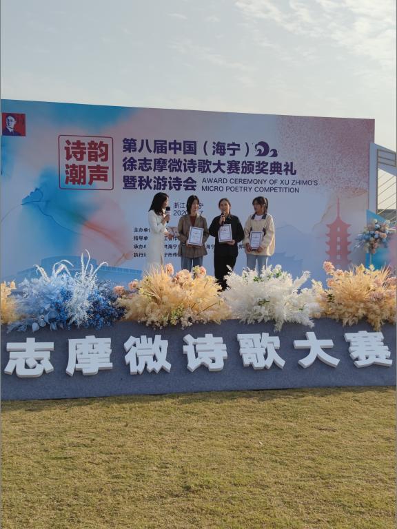 11月7日下午,“诗韵潮声”第八届中国(海宁)·徐志摩微诗歌大赛颁奖典礼在海宁鹃湖畔拉开帷幕。今年是徐志摩微诗歌大赛连续举办的第八年,本届徐志摩微诗歌大赛由中国诗歌学会、海宁市人民政府联合主办,浙江省作家协会指导,中共海宁市委宣传部、海宁市文学艺术界联合会承办。经过八年时间的积累,徐志摩微诗歌大赛已成为国内诗歌届极具影响力的权威竞赛。此次大赛于4月25日正式启动,投稿截至7月25日,经过3个月的征稿,共收到53063首作品,其中老员工投稿占比58.7%,稿件数、参与人数、老员工投稿比例均创历史新高。今年9月,经过激烈的终评和一周的社会公示,最终产生了30件获奖作品,其中有3件都来自公司2018级汉语言文学专业的员工。