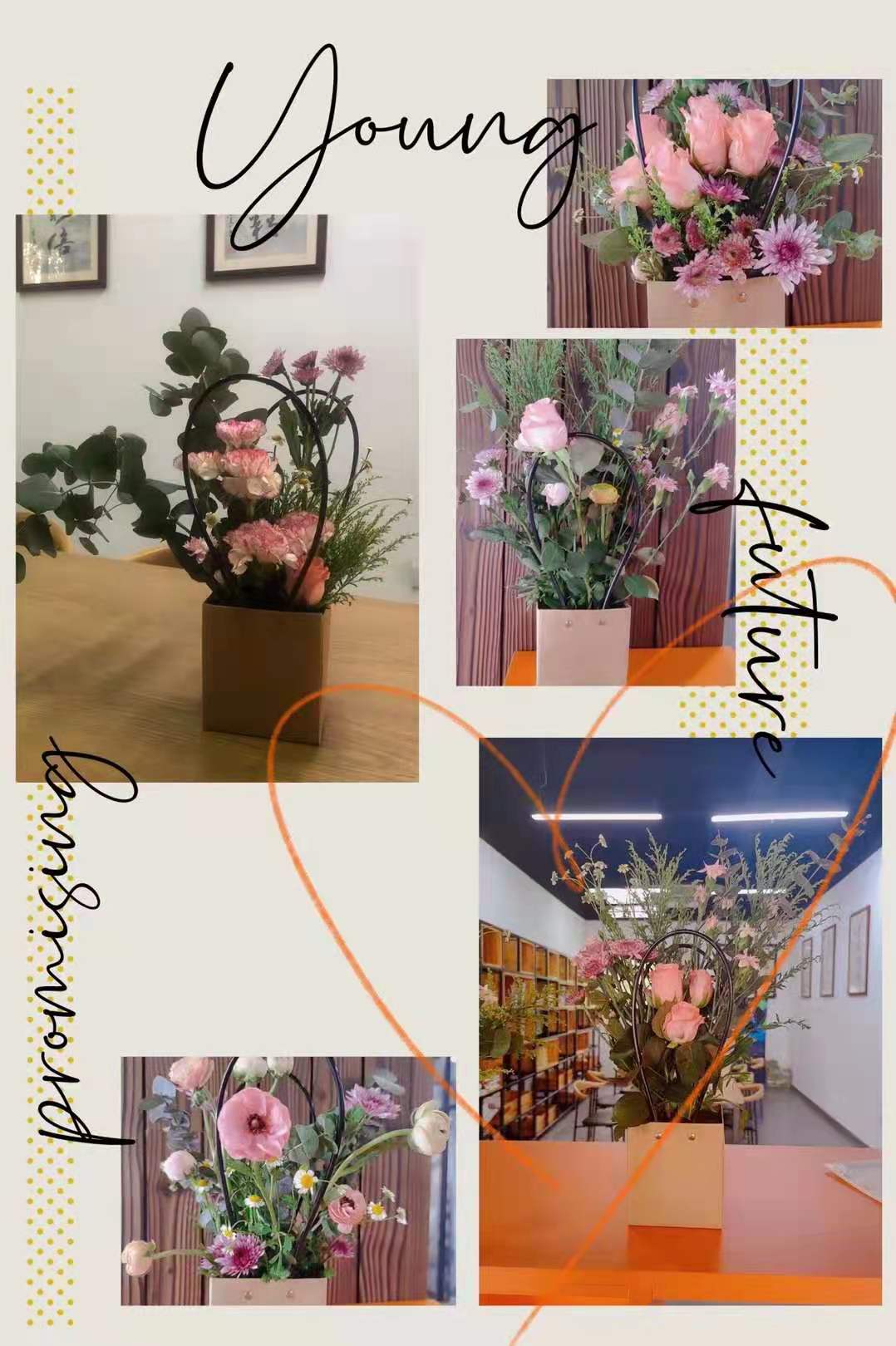 活动在花的芬芳中拉开帷幕,大家纷纷动手,花泥浸泡、花材准备、挑花搭配、造型摆设,在一片欢声笑语中有条不紊的展开,最后收获一份份精美且独特的花篮作品。