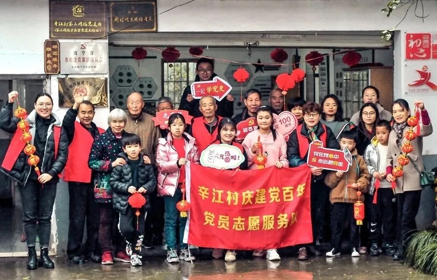 许叙虎(后排左五)、许连根(后排左二)和全网格支部一起进行学党史活动