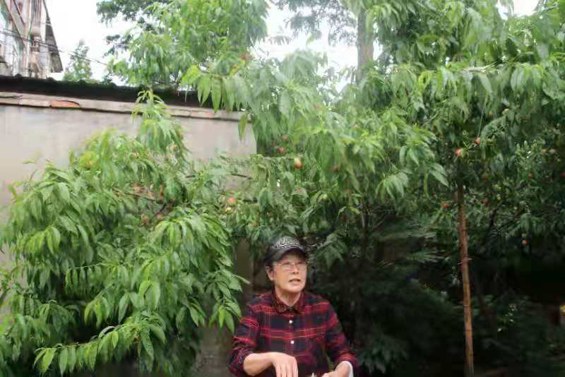 沈慕暖在自家种植的果树下,树上如她教过的员工那样硕果累累