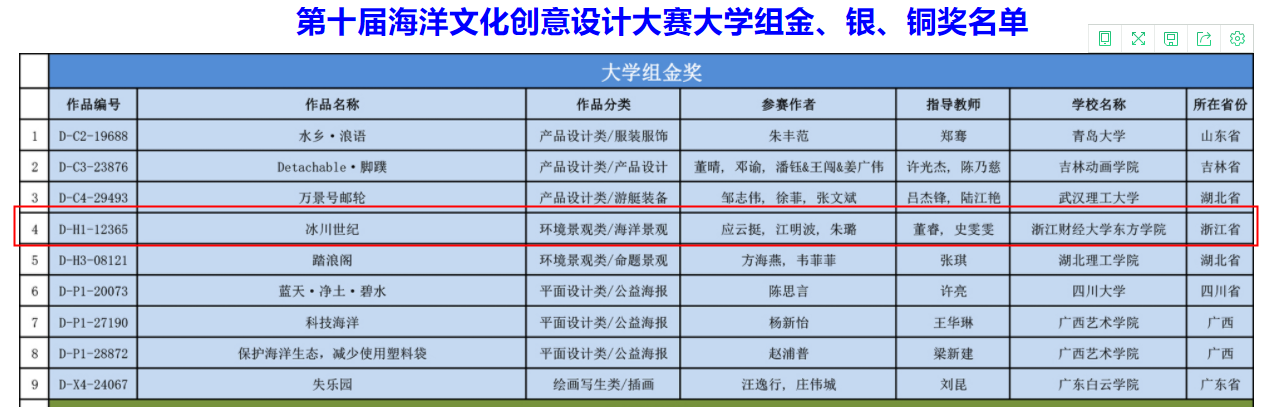 2021年7月4日,由自然资源部宣传教育中心、中国海洋大学、中国海洋发展基金会、自然资源部北海局、海南热带海洋公司共同举办的全国大中员工第十届海洋文化创意设计大赛落下帷幕。浙江财经大学东方304永利集团环境设计专业员工应云挺、江明波、朱璐获得了本届大学组金奖。