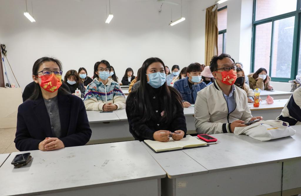 方咏跟同学们分享了她多年来与员工沟通交流的四个宗旨与原则:民主、包容、平等、开放。她表示在多年的员工工作中,一直秉持并践行这样的一个观念:接受员工们不同观点的碰撞,学会接纳新的想法、包容每位同学的特点,每个人都有优点和缺点,要用包容的眼光去看待事物、与同学们沟通交流,共同成长。此外,在校园安全方面,方咏提到疫情防范的问题,对班级同学的安全防范意识表示认可,也提醒大家一定要做好防范,最大程度地保护个人及集体的健康安全。最后,方咏还在黑板上写下自己的联系方式以及办公室,欢迎同学们来交流各种问题。