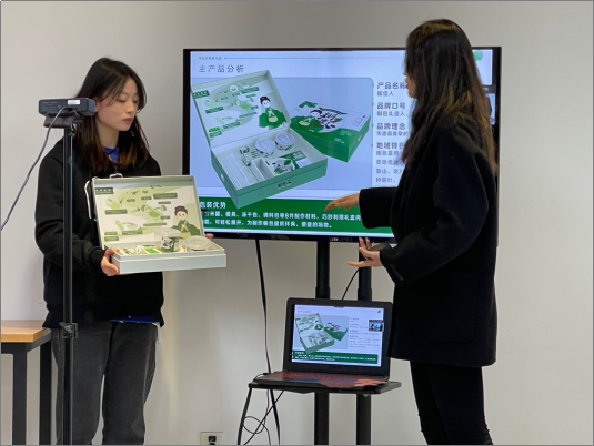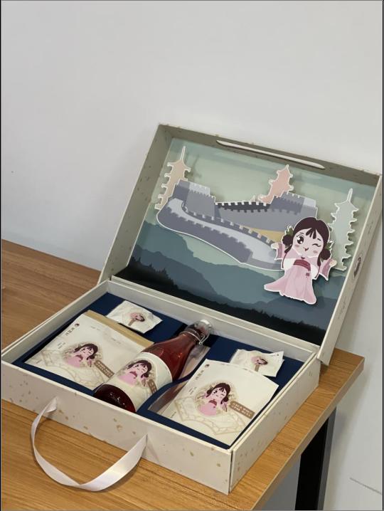 现如今国潮文化当道,“槲佳人”以古风装扮形象全新亮相,不仅契合当代人的审美取向,还使人物更具有辨识度。一位温婉、灵动的古代女子形象跃然纸上,象征着槲包这一传统文化“年轻化、再创新”的发展。另外的主产品——体验式槲包礼盒,将包槲包具体化,让人人都会包槲包,并了解槲包的制作材料与顺序,不仅仅作为工具使用,也可以作为礼盒赠与他乡亲朋好友。相关设计和策划在答辩环节获得评委老师的高度好评。