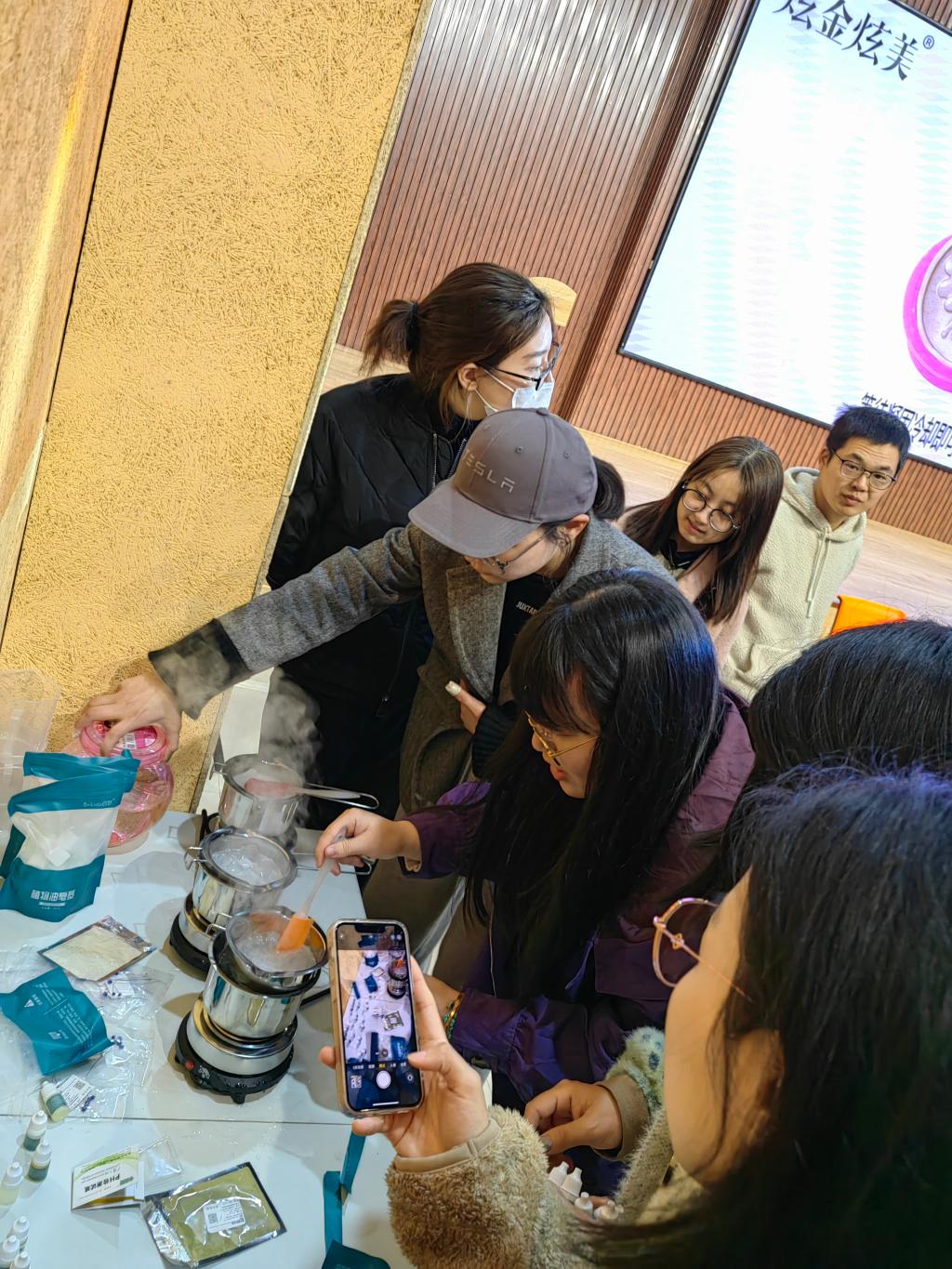 活动开始,伴随着动人舒缓的音乐,观看着制作方法及步骤的视频,大家都跃跃欲试,迫不及待的想要动手制作属于自己的手工皂。