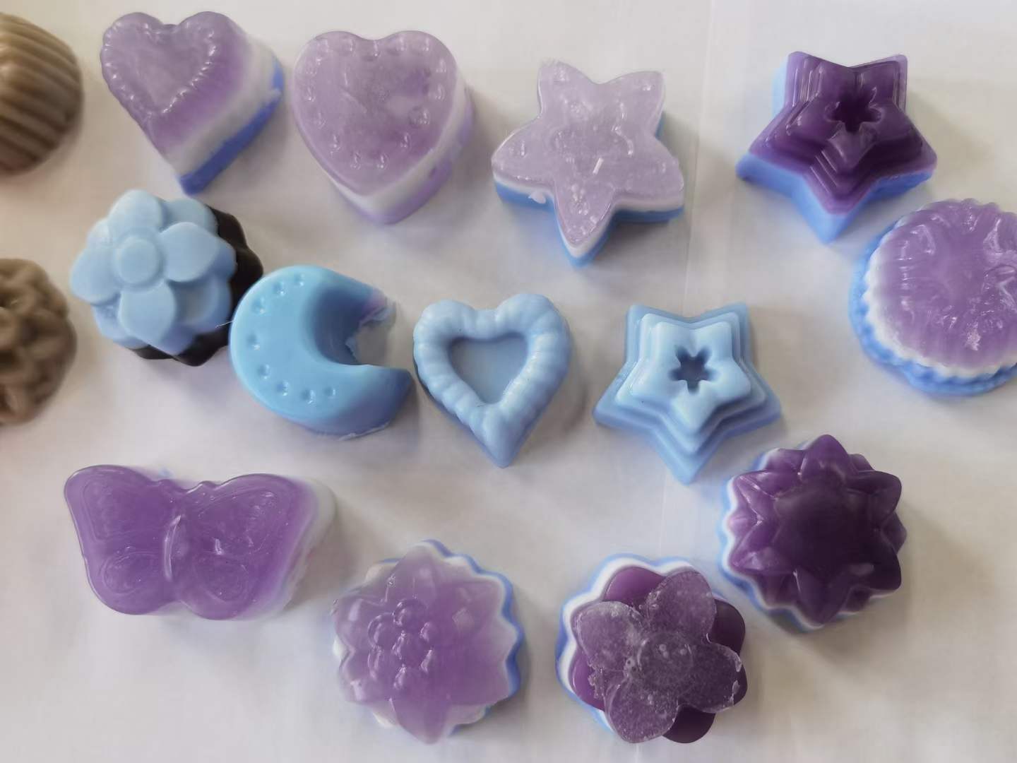 手工皂造型多姿多彩,有可爱的小瓢虫、哆啦A梦、月亮、蝴蝶、花朵等造型。手工皂的制作过程就像一场奇异的旅程,每一点细微的变化,都可以期待不同的喜悦。
