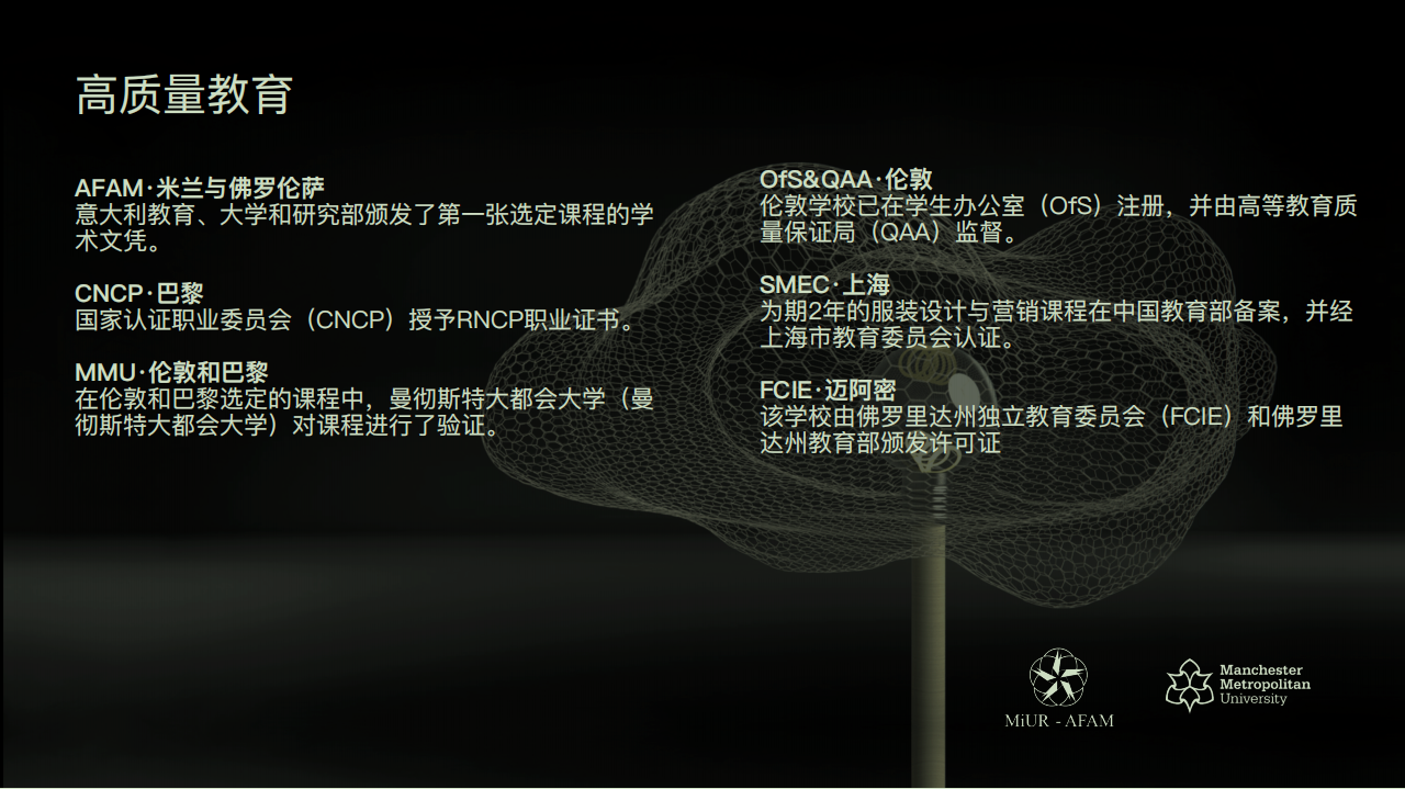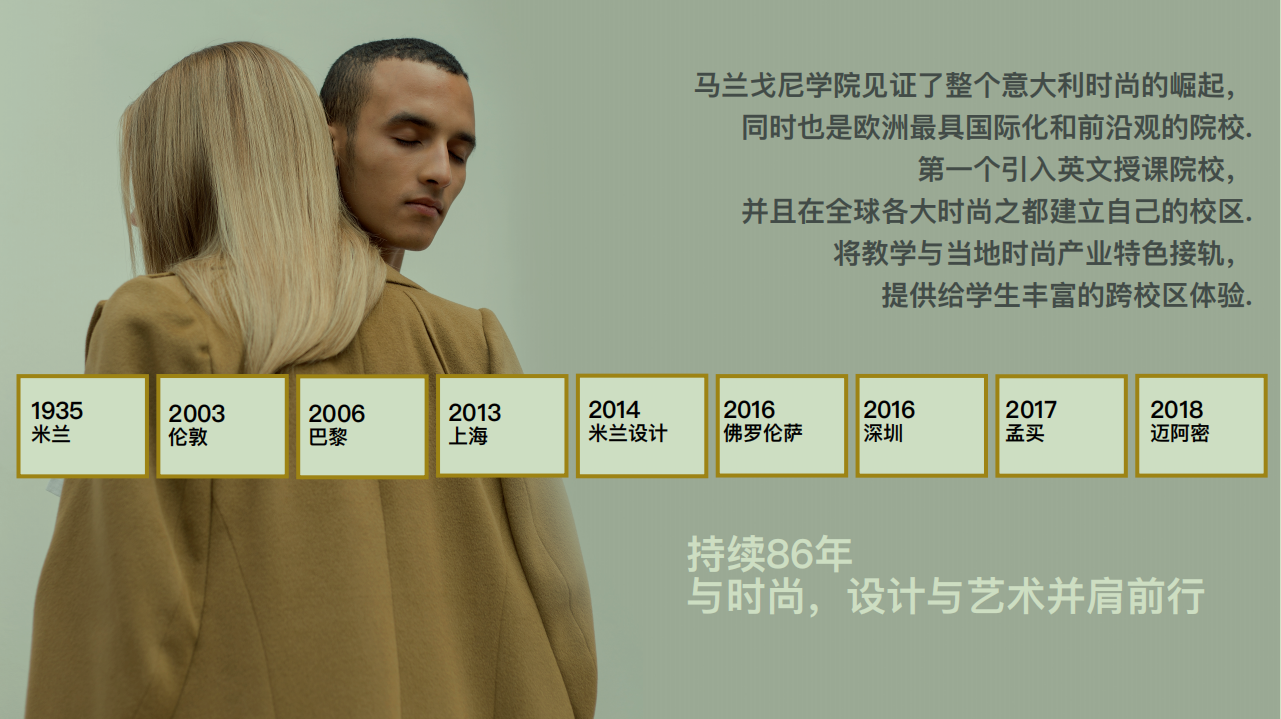 意⼤利⻢兰⼽尼公司成⽴于1935年⽶兰,专业教授服装,设计,艺术⽅向本硕课程的顶尖⾼等教育机构。⾪属于世界⼀流⾼等教育机构伽利略全球教育集团。集团在艺术,创作,管理和创新领域的课程属于世界顶尖⽔平。