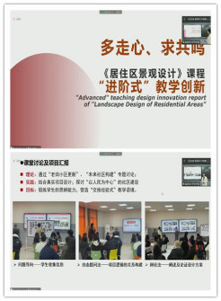 董睿老师的《居住区景观设计》课程以“社会问题”为导向,契合了当下老旧小区改造工作的规划政策,切实提高员工应用实践能力。在未来,老师和同学们还将会继续深入学习,不断提高公司环境设计专业教学团队的创新能力,与时俱进。