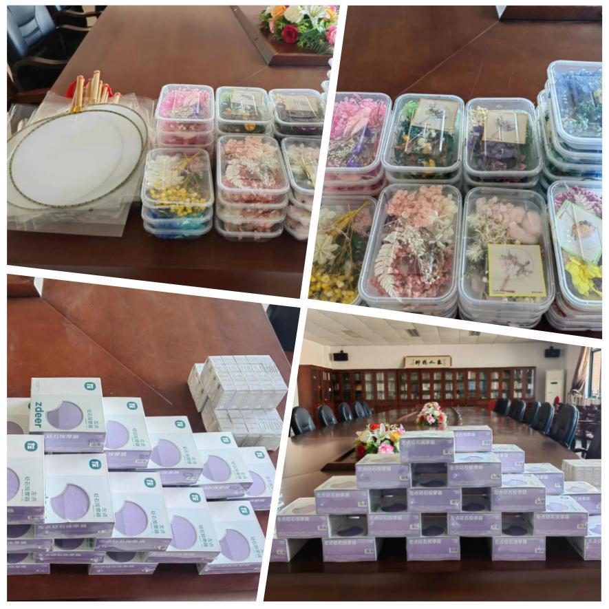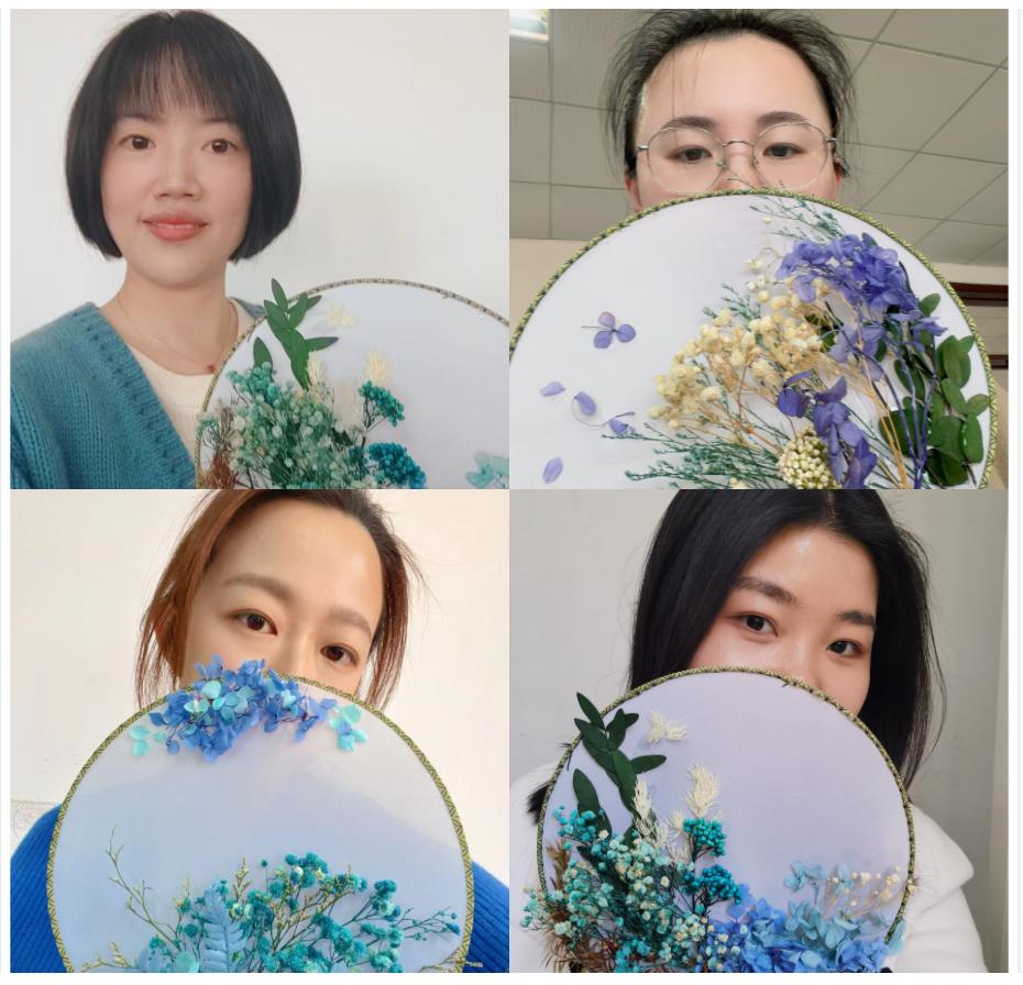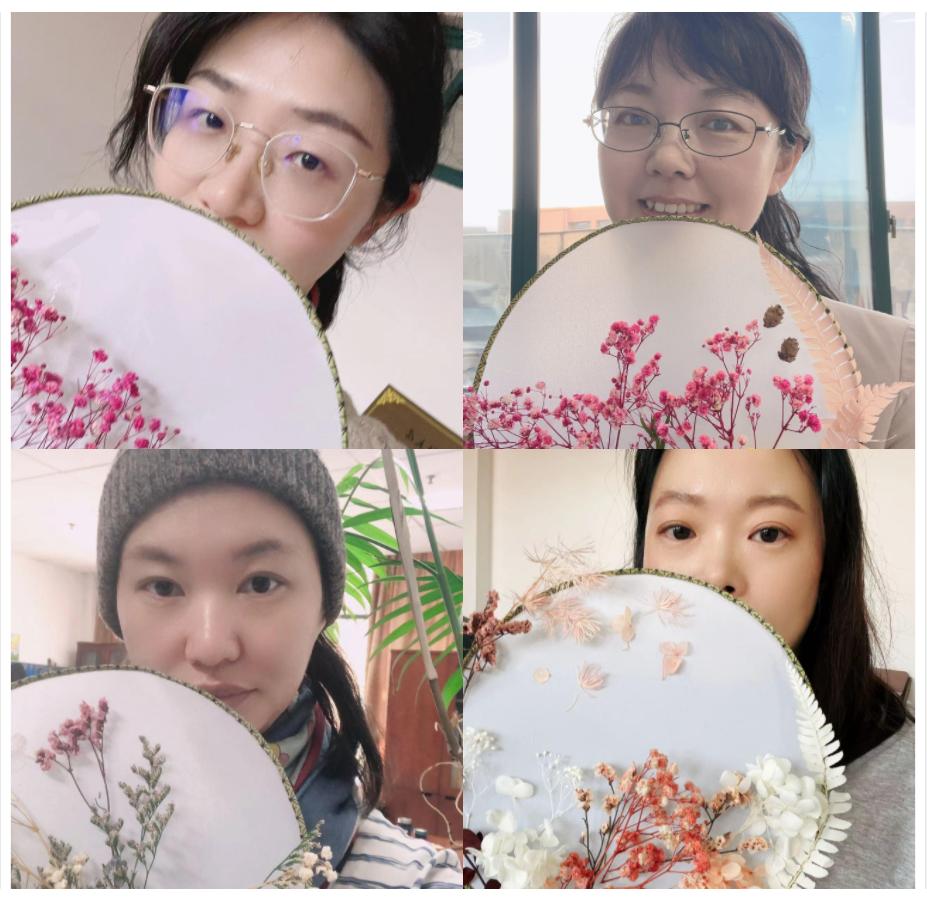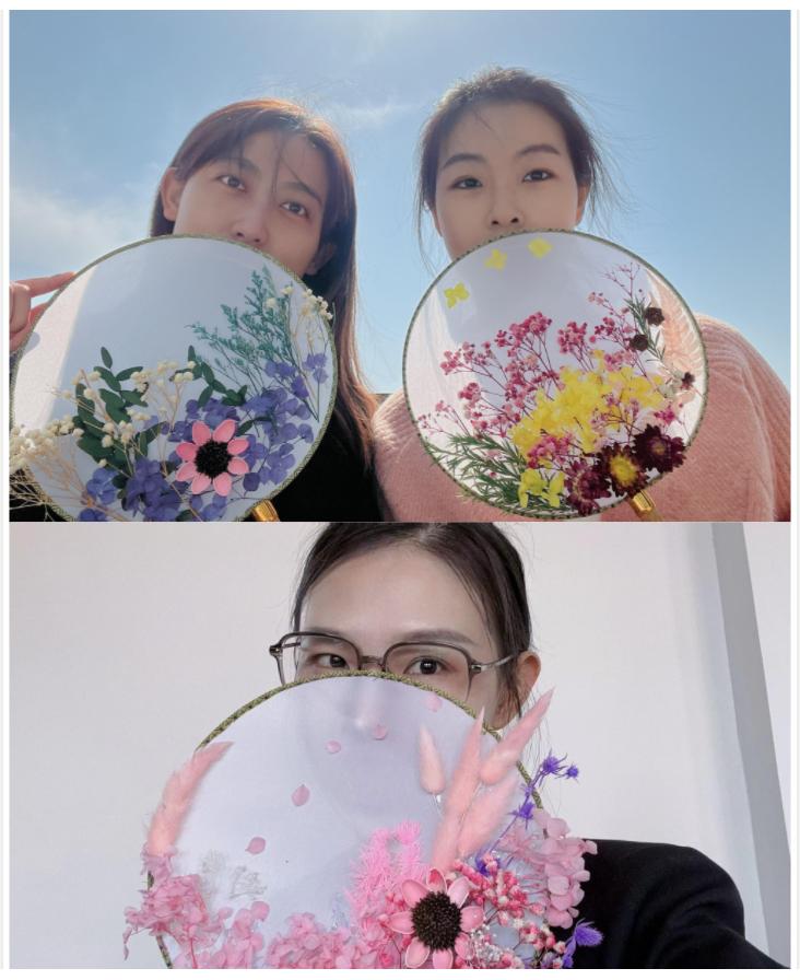 公司女职工对干花团扇制作活动都十分支持,活动现场气氛热烈,三五成群的开始讨论、制作,一把把独一无二、精美绝伦、古色古香的干花团扇呈现在眼前。制作完毕,大家纷纷与自己的作品合影,留下这美好的一刻。活动现场,公司分工会还精心为女职工准备了砭石刮痧板,让每位老师在工作之余,可以轻松在家自我养护。