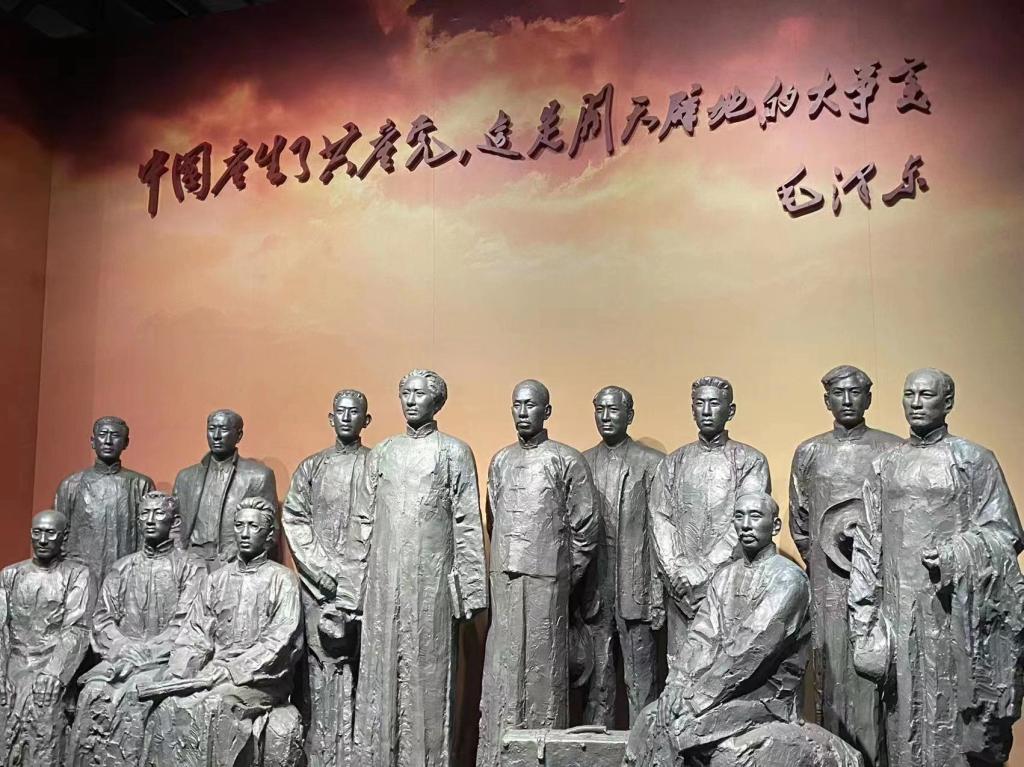 展厅内,“救亡图存”“开天辟地”“光辉历程”“走向复兴”四幅历史画卷徐徐展开,从中国人民反抗封建统治和外来侵略的激烈斗争,到中国共产党应运而生,再到党在重大历史时刻的关键抉择,经济社会发展的历史跨越,最终迈向世界引领未来的新时代大国气象……