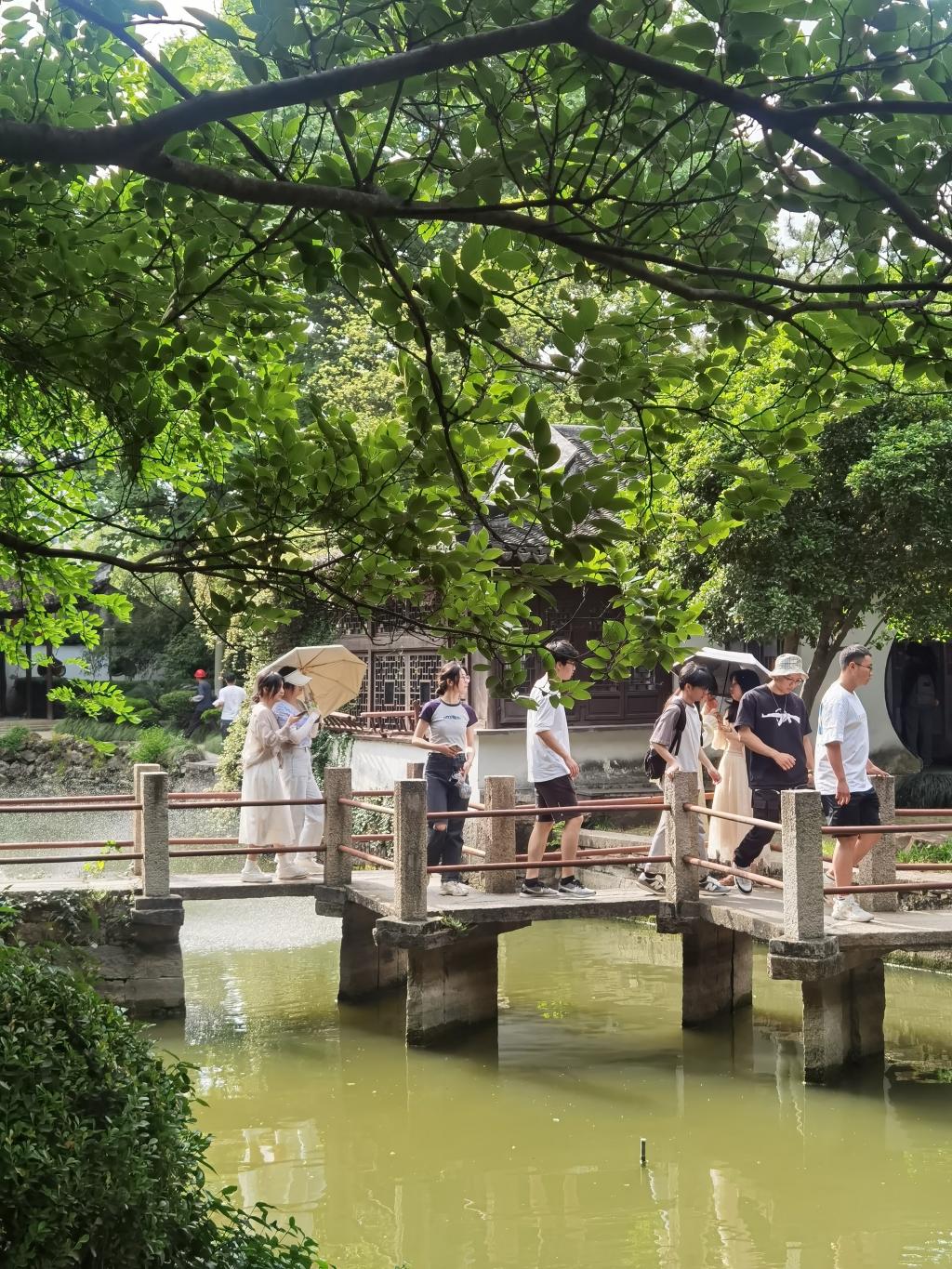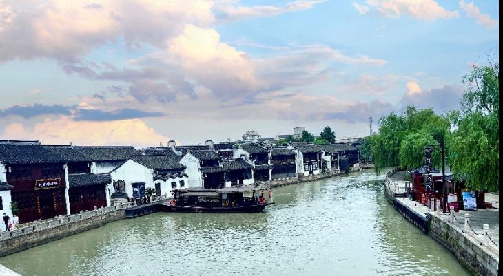 参观完南湖革命纪念馆,早上的行程就结束了,我们来到嘉兴有名的月河老街,月河因“其水弯曲,抱城如月”而得名,现存的房屋多为粉墙黛瓦、飞檐翘角的清末民初建筑。石桥通巷、轮廓优美、色彩淡雅,呈现出一幅“小桥、流水、人家”之景,石板路意境优美,店铺临河而建,这里的一砖一瓦都勾勒出江南特有的风土人情。民居依水造势,古街深巷纵横交错,小河、古桥、狭弄等还原了传统的江南水乡风貌,延续了江南水乡街、巷、市、埠的传统商贸特色。