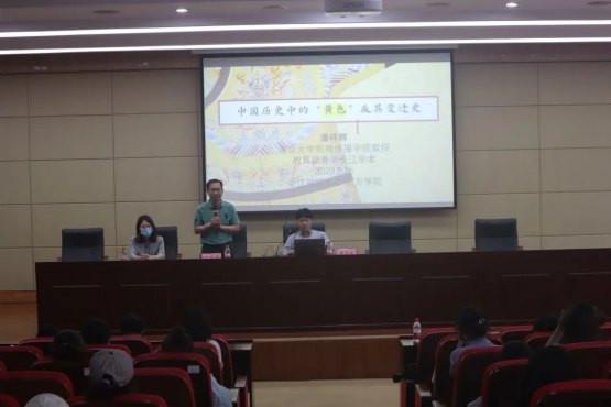 潘教授还为员工们开展了一场主题为“一个中国历史中的‘黄色’及其变迁史”的讲座。讲座从媒介之颜色维度,用大量的史料为证,点出中西方文化中黄色的不同含义,并重点论述了中国古代文明中以黄为尊的发展历史。通过讲座,潘教授向同学们揭示了文化变迁对颜色观念的重大影响。他提出,颜色本无高下,作为时代所主导的一种象征,它是政治、文化传播、哲学观念与国家共同建构的结果。