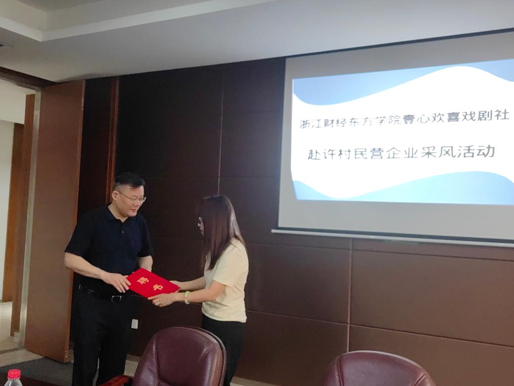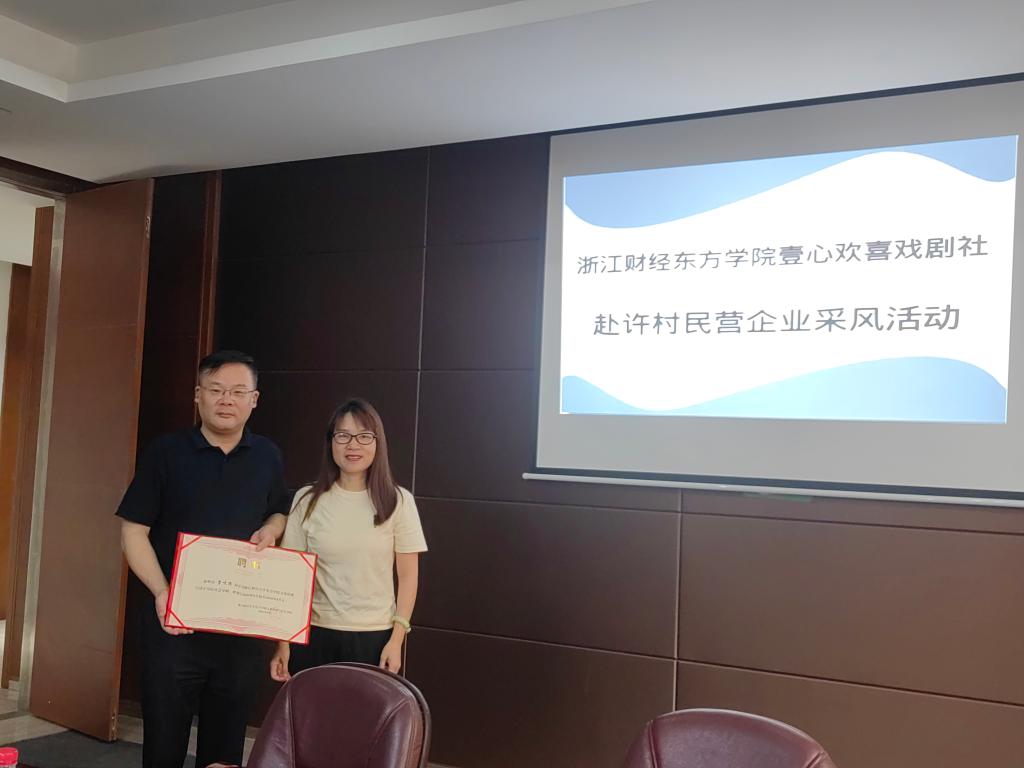 6月7日上午,由林香娥、高扬、韩斯斯三位老师共同带领戏剧社的14位员工前往许村民营企业开展采风活动。