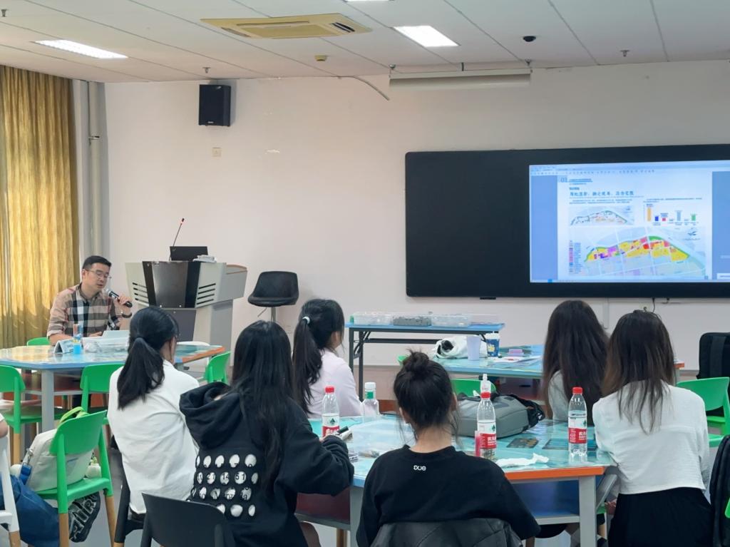 在本次讲座中,何培峰先生首先跟大家分享了自己主持参与的多个城市区规划方案,讲解了城乡综合营造及未来社区、居住区规划的相关专业知识,通过生动的案例和深入的分析,向大家分享了近年来居住区规划的相关设计趋势。而后结合《专项设计二》课程点评了21环境1班同学居住区规划的设计,对相关设计方案提出表扬并指出不足之处。何培峰先生基于自身丰富的实践经验和深厚的专业知识就该问题旁征博引,用自己丰富的专业经验具体点评每个同学的设计方案,“一针见血”的指出不足之处,点出居住区规划重点在规划上,要适配与各方案的地理区位,设计应该先理清交通路线,再分区规划,最后设计各区域内的具体节点,并综合考虑适配与规划地区的日照、楼高指标和地区风格。