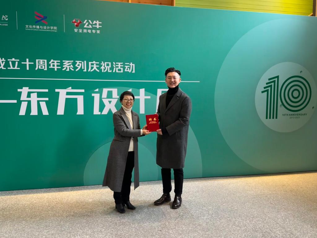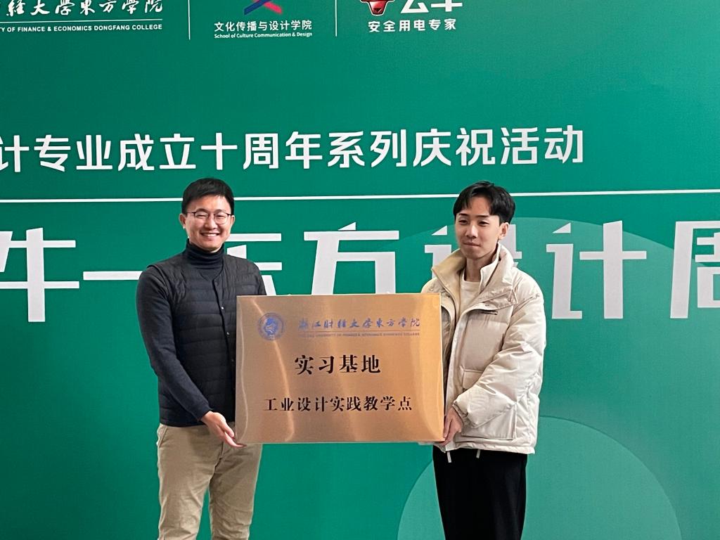 活动中,马雪英副经理为高诗博先生颁发业师聘书,产品设计系主任谢奇聪为公牛集团颁发实习基地牌匾。随后,领导和嘉宾共同参观了公牛-东方设计周成果展,对员工的设计作品给予了高度评价。