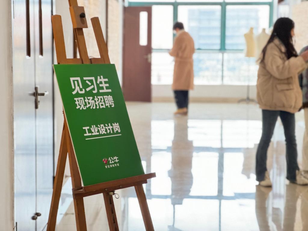 当日公牛集团工业设计部门还在公司组织了见习生现场招聘,吸引了众多同学前来应聘。