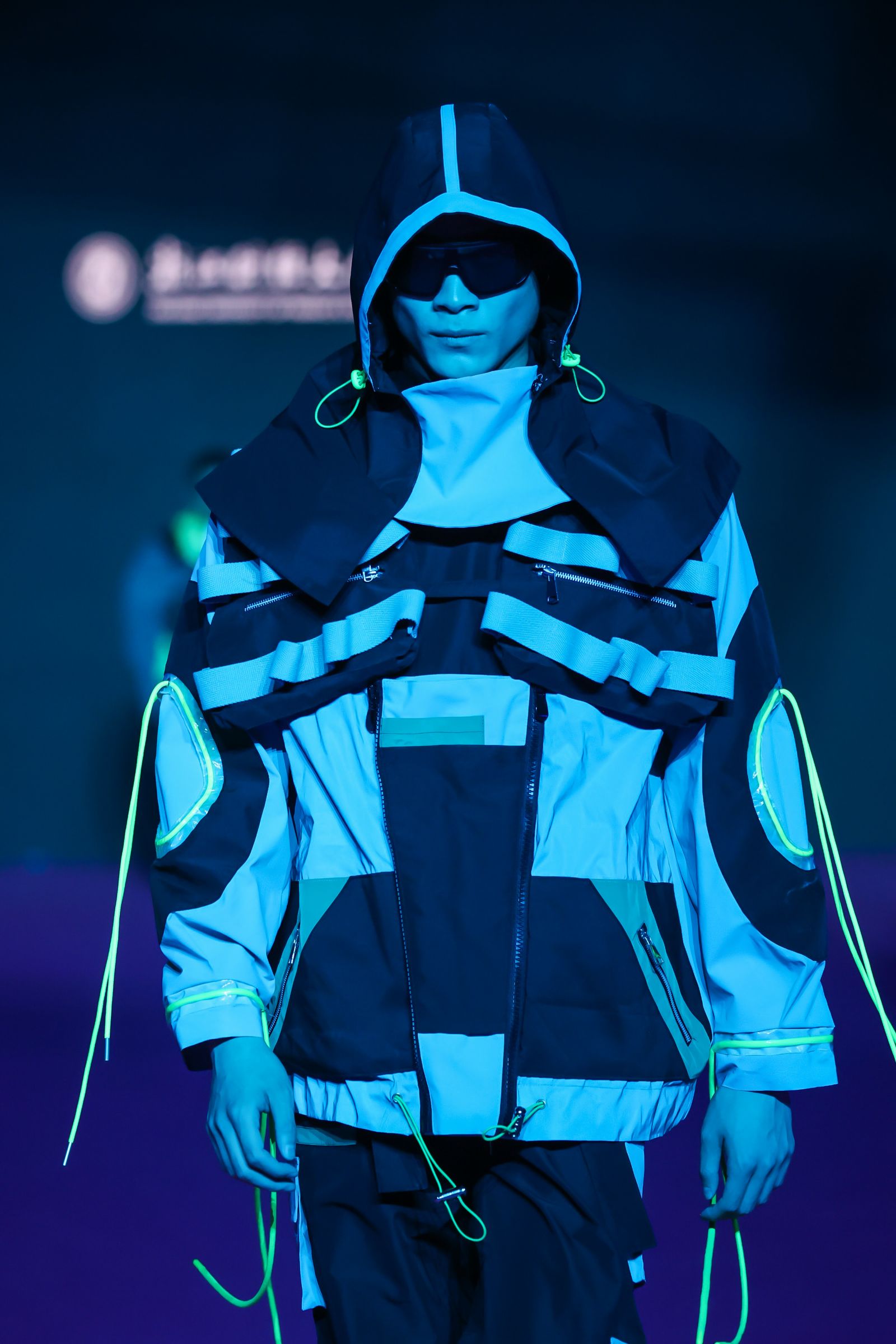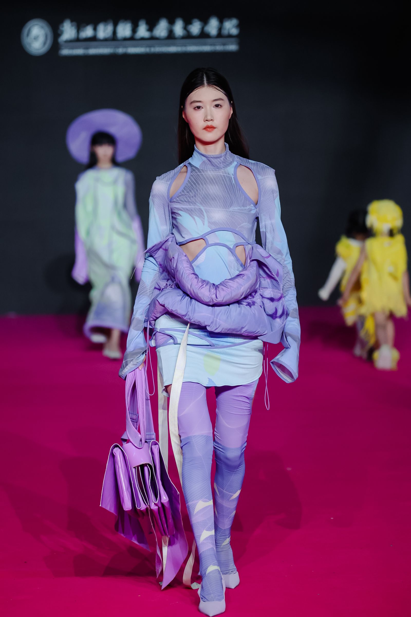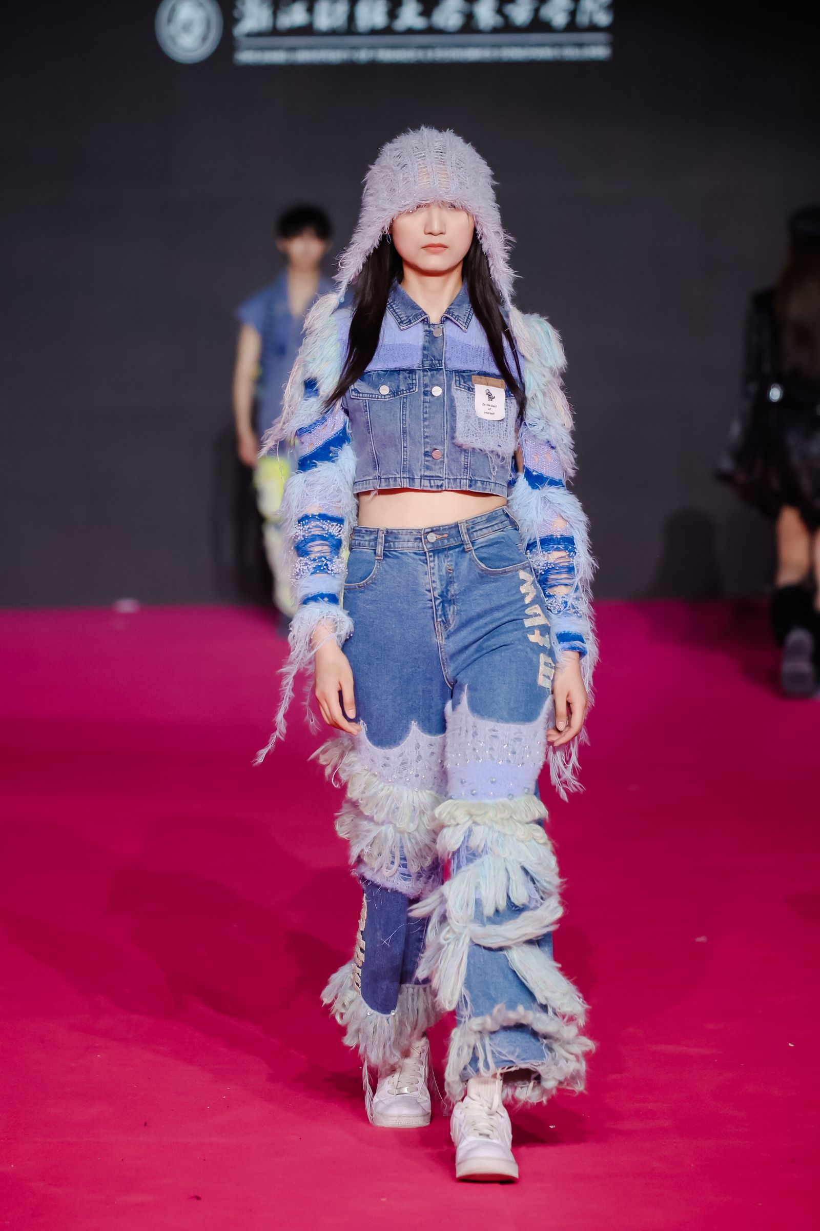 第三篇章以产教融合和成衣设计为主题,不再局限于面料的设计或局部的装饰,而将设计的关注点放在生活的表达和个性的展现上。不管是极繁主义的结构设计,还是从户外运动得到灵感的机能风格,设计师们用不同的款式、工艺、色彩和面料肌理的创意来体现对服装的不同感悟与理解。在这一篇章中展演了公司与上海美特斯邦威服饰股份有限公司合作的“新声乌托邦”库存服装再造项目,设计师们基于可持续设计的理念,利用美特斯邦威品牌现有的库存服装展开创作设计。整个系列将可持续这一设计理念上升到实际的企业生产,服务于服装消费市场,落地于服装产品及品牌传播。