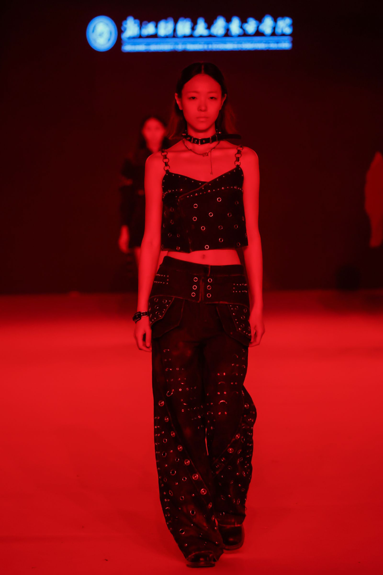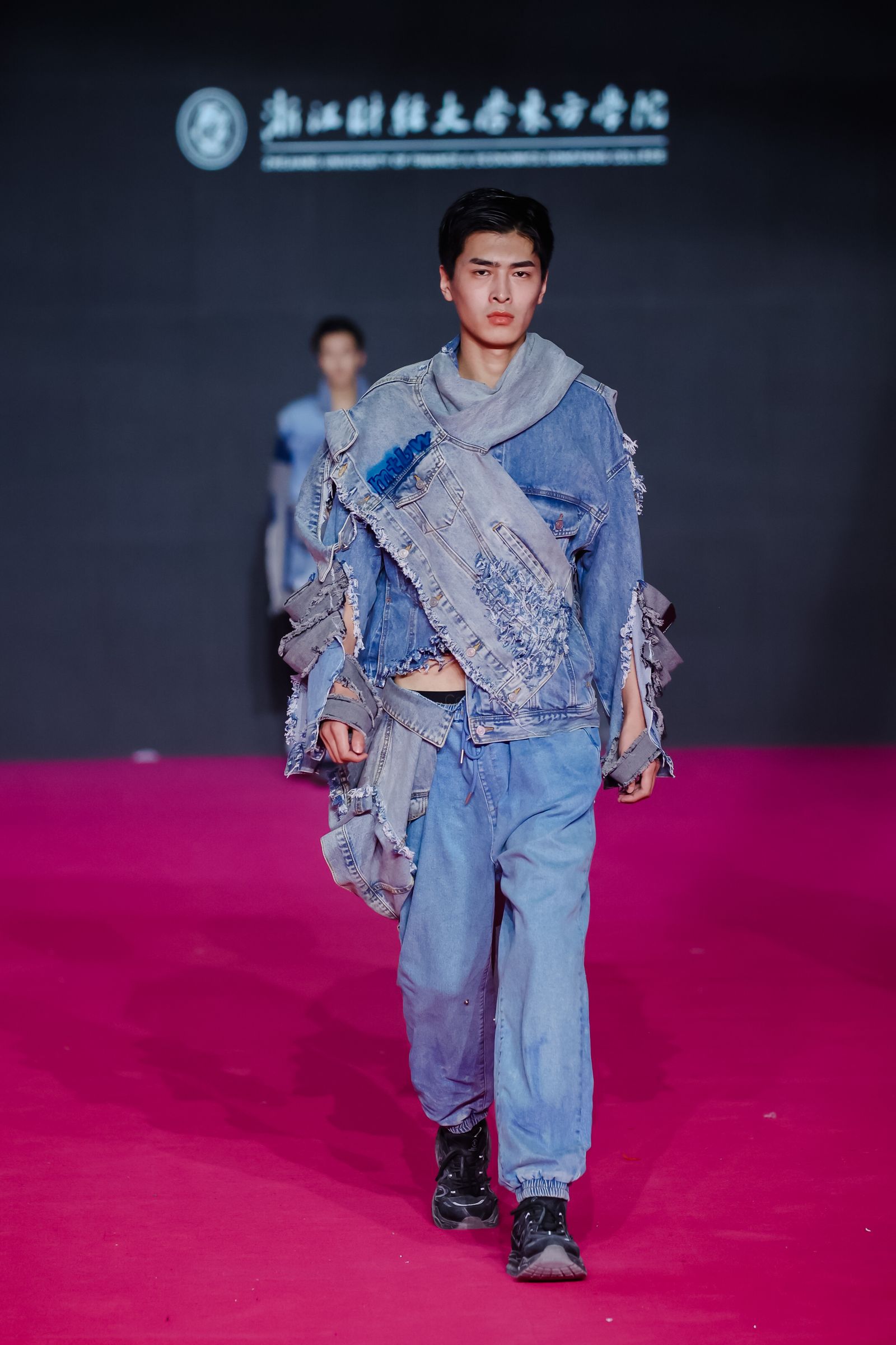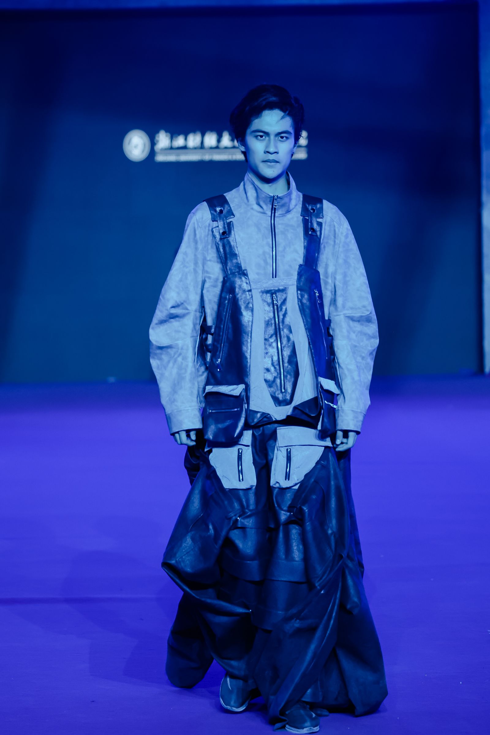 第三篇章以产教融合和成衣设计为主题,不再局限于面料的设计或局部的装饰,而将设计的关注点放在生活的表达和个性的展现上。不管是极繁主义的结构设计,还是从户外运动得到灵感的机能风格,设计师们用不同的款式、工艺、色彩和面料肌理的创意来体现对服装的不同感悟与理解。在这一篇章中展演了公司与上海美特斯邦威服饰股份有限公司合作的“新声乌托邦”库存服装再造项目,设计师们基于可持续设计的理念,利用美特斯邦威品牌现有的库存服装展开创作设计。整个系列将可持续这一设计理念上升到实际的企业生产,服务于服装消费市场,落地于服装产品及品牌传播。