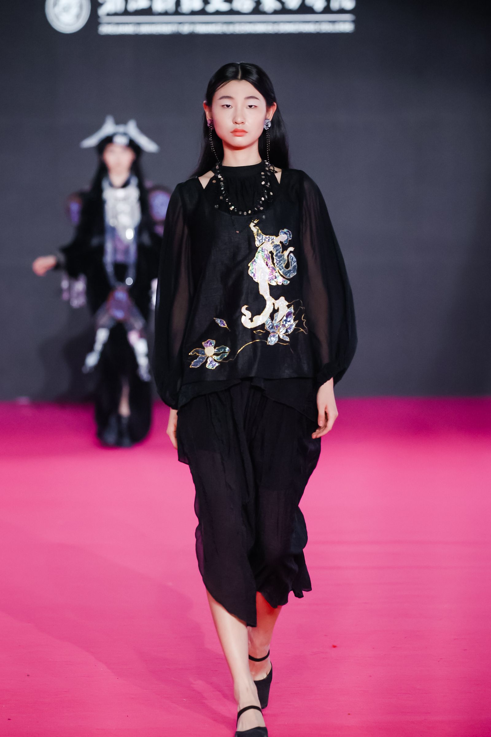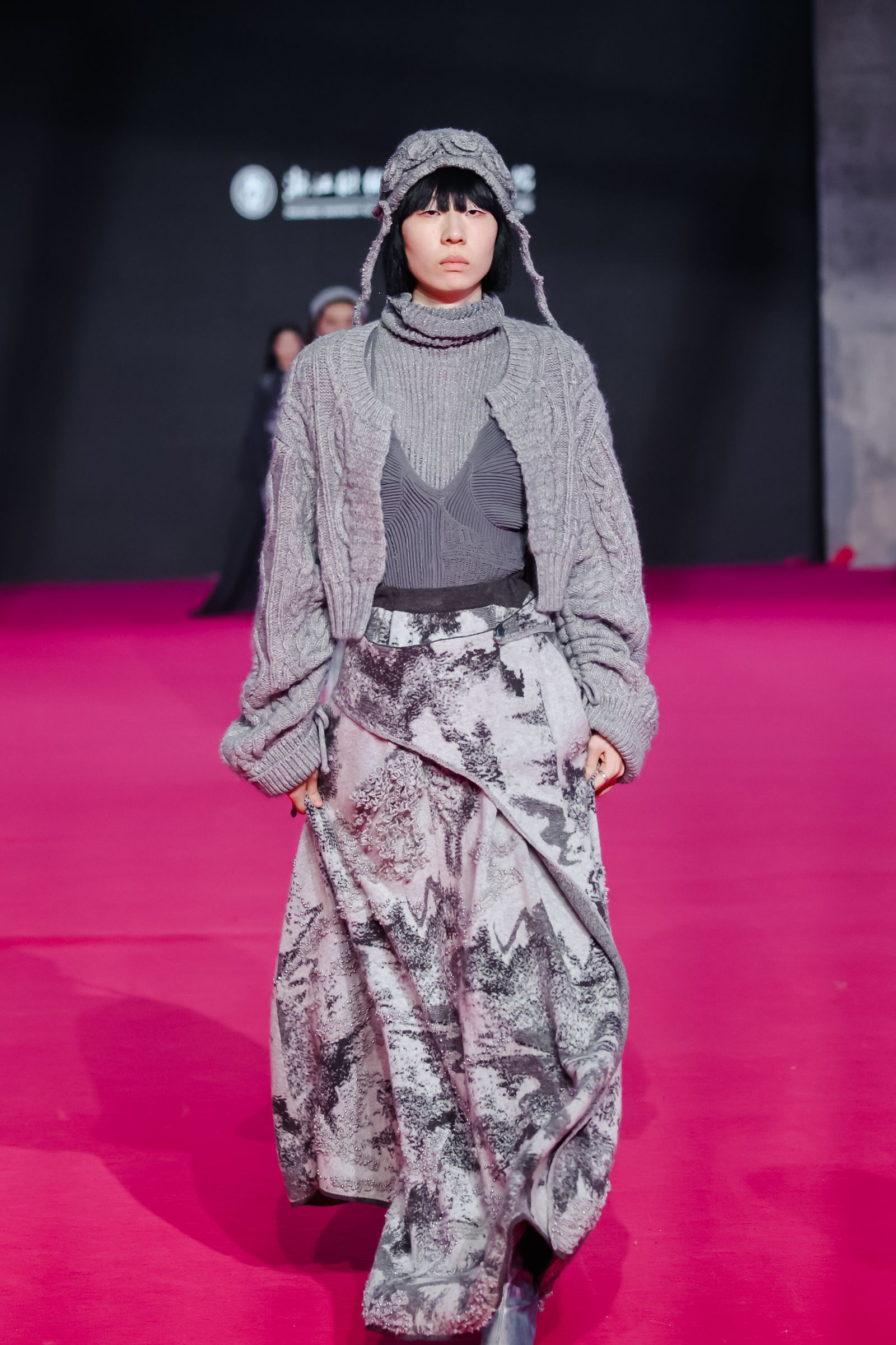第一篇章将传统文化的传承与现代科技的创新结合在服装设计中。立足于传统文化和在地文化的新中式系列作为本次毕业秀的开场,不同风格的服装将优秀的传统文化和民族文化通过不同材质、不同工艺、不同结构的组合搭配,塑造出全新的结构和层次,打造别具一格的东方美学。这些作品中既有基于可持续理念的针织服装系列,也有民族特色鲜明的少数民族礼服设计,展现了新生代设计师对于民族文化的自豪感与认同感。