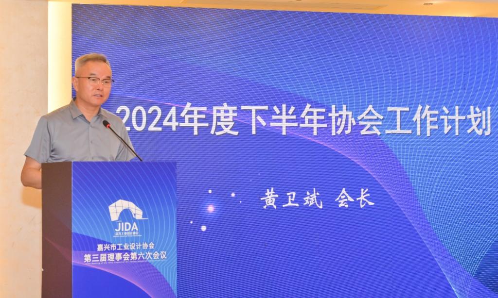 随后,嘉兴市工业设计协会会长、浙江火星人厨具股份有限公司董事长黄卫斌作2024年度下半年协会工作计划。他表示协会将全力举办好工业设计职业技能竞赛,激发创新活力;继续组织培训交流等活动,提升会员专业水平;加强与院校合作,推动设计成果转化;开展行业交流,拓展视野;完善协会自身建设,提高服务质量。