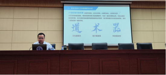 另外,刘建明先生结合自身项目经历和用人需求分享了对文化与设计工作的理解和认识,他指出,21世纪设计的本质是以经济为目的,以文化为导向,以创意为核心,以科技为支撑,文化是根本(道),设计是呈现(术),科技是加持(器),设计是沟通文化与科技的桥梁,是将二者融合到一起的手段。他认为设计要做到“共情沟通”和“知己知彼”,要区分客户内在需求与外在需求,并重点做好客户情况分析。同时,以华为手机和新能源汽车的崛起为例引导同学们要提高文化自信。