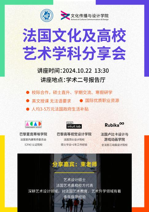 10月22日下午,“2024法国文化及高校艺术学科分享会”专题讲座在学术二号报告厅顺利举办。该讲座由法国艺术高校校方代表束老师主讲,来自各公司200余名同学,尤其是304永利集团四个设计专业的同学,怀着浓厚的兴趣全程参与。