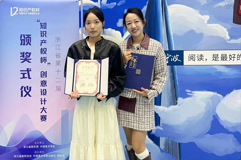 10月25日下午,浙江省第十二届“知识产权杯”创意设计大赛颁奖仪式在宁波国际会展中心举行。本次大赛由浙江省版权局和中国美术公司联合主办,浙江省版权协会与中国美术公司出版社承办,各设区市新闻出版局(版权局)及浙江版权服务中心协办,大赛主题为“创意扬帆 版权护航”,吸引了来自全省高校的众多在校生参赛。大赛收到来自省内66所高校报送的3851件参赛作品,其中公司共报送120余件作品,获一等奖1件、优秀奖5件,视觉传达设计专业的虞璐荣获优秀指导老师,充分彰显了公司在文化创意领域的雄厚实力与无限潜力。