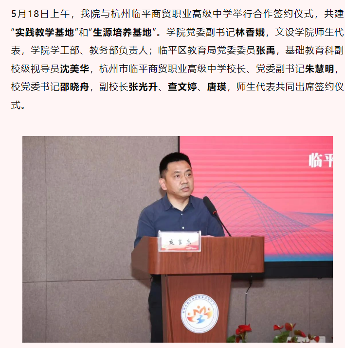 (公司与临平商贸职业高级中学签署“实践教学基地”合作协议书)