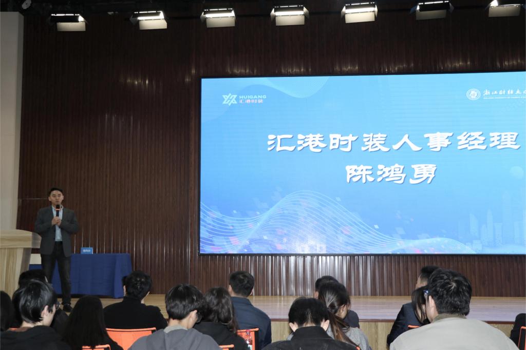 浙江汇港时装有限公司人事经理陈鸿勇代表企业方发言,介绍了浙江汇港时装有限公司的概况以及发展历程,陈鸿勇对公司举办的此次捐赠仪式表示郑重感谢,他表示,浙江汇港时装有限公司非常关心和支持公司教育事业的发展,希望能与永利集团搭建交流平台,开展深层次的合作,实现校企资源共享,为针织服装行业发展提供技术支持和人才保障。