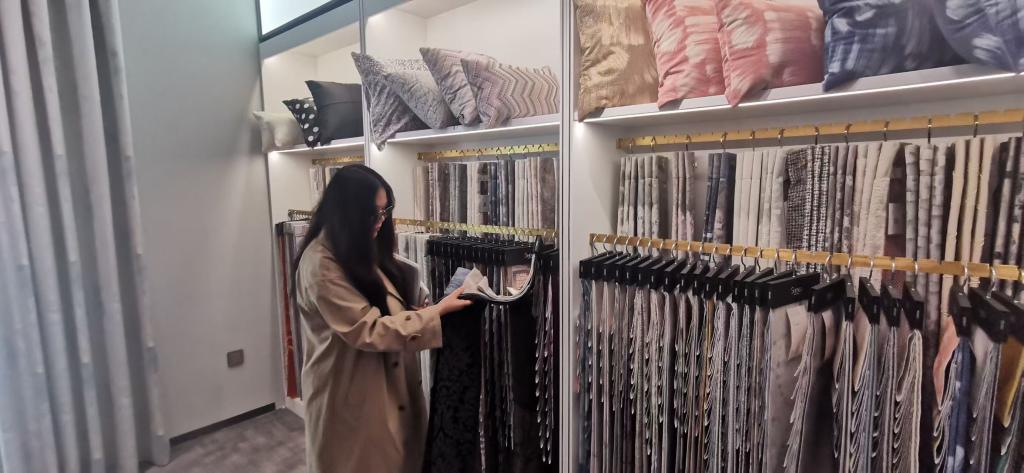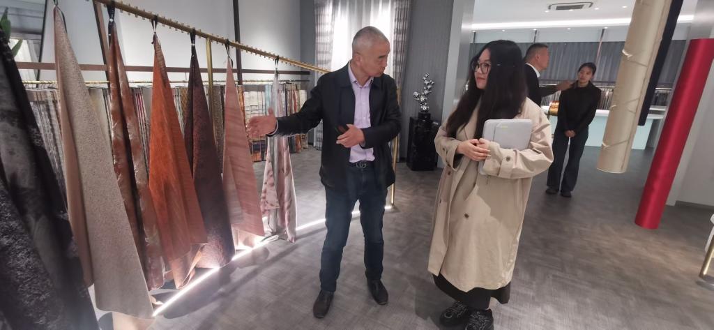 海宁市斯泰堡纺织有限公司,坐落于全国著名的家纺布艺生产基地——许村镇。经过多年的打拼与奋斗,已发展成为一家集研发、生产、销售于一体的现代化纺织实业集团公司。年生产家纺面料约1250万米,是中国窗帘布、沙发布、墙布以及国风汉服等面料行业的领军企业之一。白老师与海宁市斯泰堡纺织有限公司的合作由来已久。自2023年起,双方就签订横向课题开始携手开发马面裙面料纹样,致力于将中国传统文化与现代设计理念相融合。随着2024年国风潮流的盛行,双方更是紧跟时代步伐,共同研发了一系列丝绸国风面料,为家居生活注入了更多的文化韵味和艺术气息。