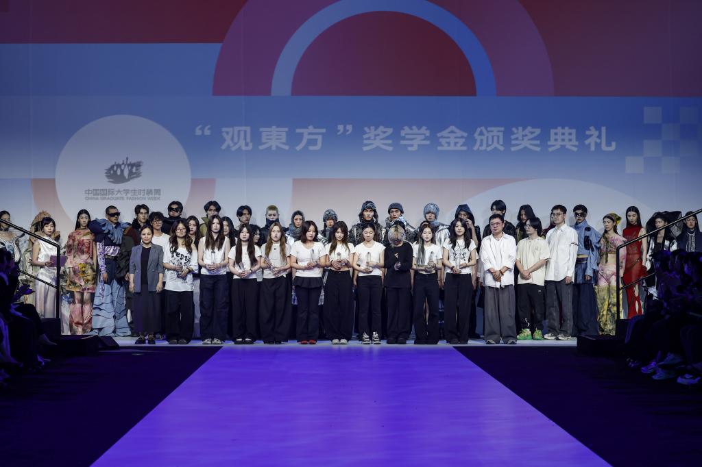 发布秀现场还举行了“观東方奖学金”颁奖典礼。该奖学金由观東方品牌赞助并授权浙江财经大学教育基金设立,旨在鼓励员工开拓创新,践行博雅精神,传承东方文化,赋能时尚产业发展。经过评审,10名优秀毕业生获此殊荣。