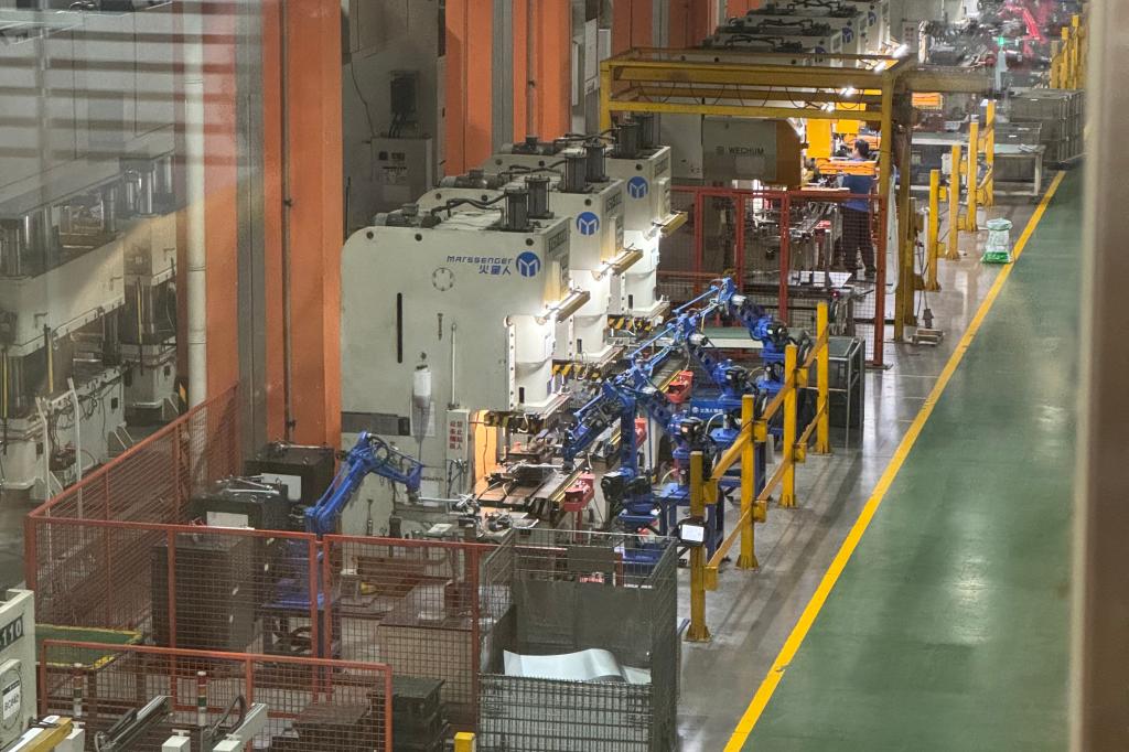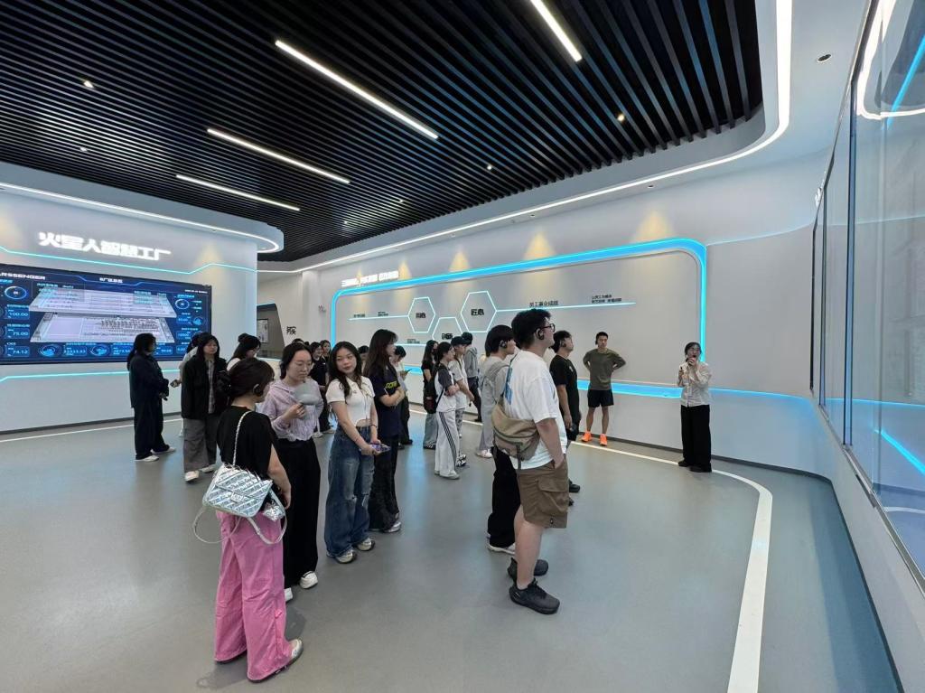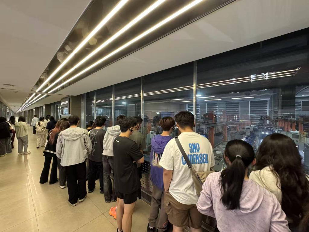 随后,大家走进智能化生产车间。透过玻璃,同学们看到冲压、焊接等工序由智能机器人高效完成,多条生产线同时运作,场面井然有序。在指挥室,数据动态展示面板实时呈现产品产出、销量、员工工作情况等信息,彰显企业数字化发展成果。同学们认真聆听讲解,对钣金工艺生产流程以及先进制造技术有了更直观、深刻的认识。