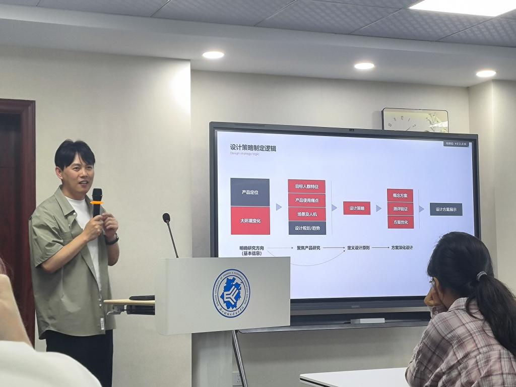 张冠男先生在工业设计领域有着丰富的经验和卓越的成就,他的到来受到了同学们的热烈欢迎。分享过程中,张冠男先生从企业的视角出发,深入剖析了工业设计项目的各个环节。他强调了设计策略在项目中的重要性,指出一个成功的工业设计项目,不仅仅是外观的创新,更要考虑到市场需求、用户体验、生产成本等多方面因素。为了让同学们更好地理解,他结合公牛集团的众多经典设计案例,如无页风扇灯等,详细讲解了从项目前期的市场调研、用户需求分析,到设计概念的提出、方案的优化,再到最终产品的落地生产,每一个步骤都需要精心策划和严谨执行。