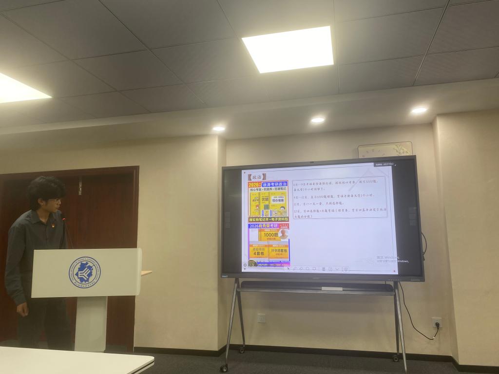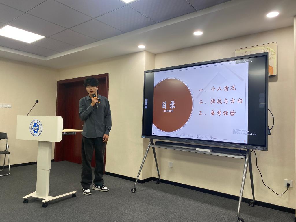 分享环节中,张哲学长围绕“择校、初试攻坚、复试突围”这三个核心阶段,并结合时间安排、专业手绘、理论学习、政治备考、日语学习等具体方面,分享了他的经验和心得。